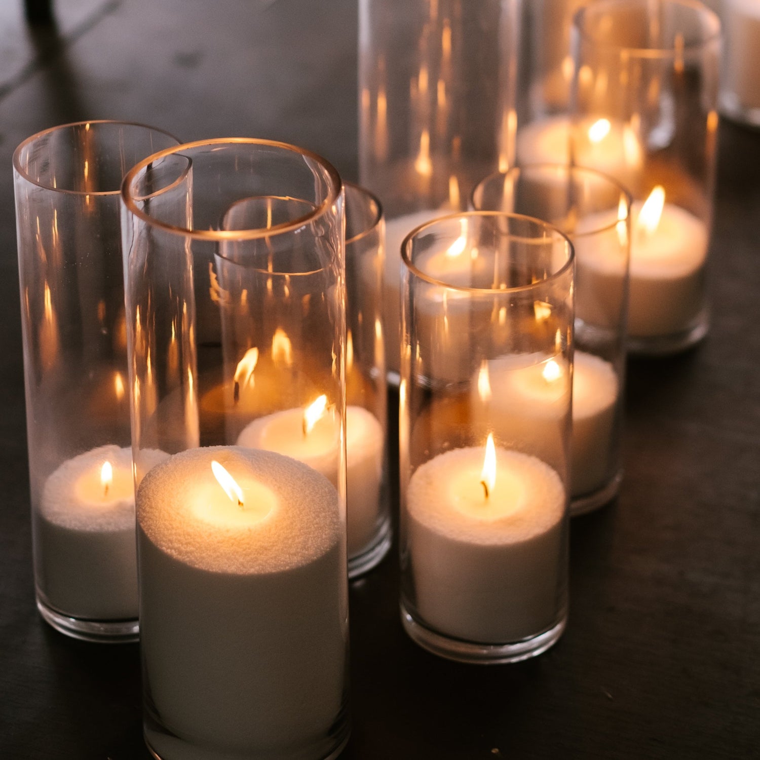 We are now offering event candle hire. Featuring clear glass votives with our white pearled wax poured to your desired height.